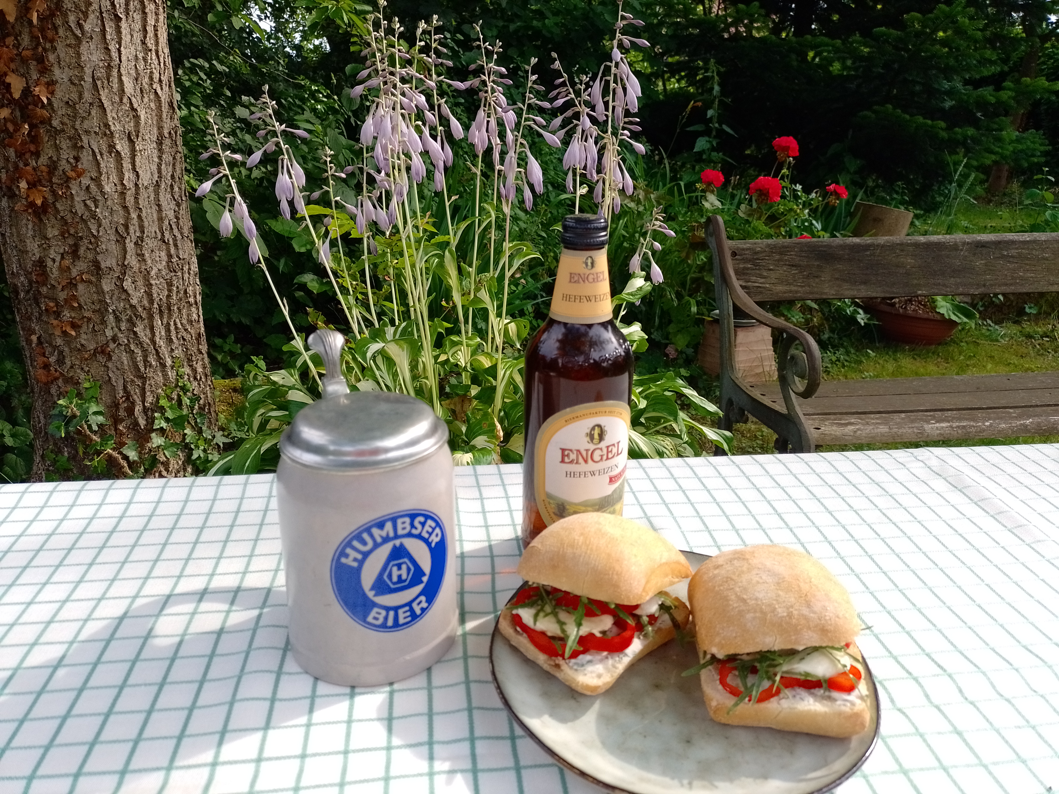 Mit einem kühlen Bier aus dem Krug einer der ehemaligen Fürther Brauereien schmeckt diese Alternative zum XXL-Burger nochmal so gut, auch ohne Fleischklops. Zur früheren Humbser Brauerei gibt es noch zu sagen, sie war eine der fünf großen und bekanntesten Brauereien in Fürth und später führend in der Weizenbier-Produktion. Der Ahnenreihe meiner Mutter Johanna (geborene Humbser) zum Langenzenner Braumeister Johann Stephanias Humser (das b wurde dem Namen erst später hinzugefügt), dem Mitbegründer der Langenzenner Bierbrauerzunft, wurde bereits ermittelt. Es gab zu dieser Zeit sage und schreibe neun Brauereien in Langenzenn. Der Zusammenhang und die Erforschung der Fürther Linie, die ebenso wie meine nach Weinzierlein führt, wartet noch auf mich.
