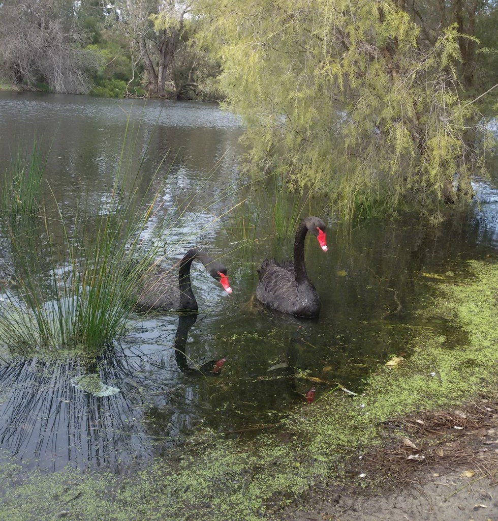 In Perth/Westaustralien lebt nicht nur ein Teil meiner Familie, auch Verwandte der Enten, die schwarzen Schwäne, habe ich hier entdeckt. Haftet ihnen nicht ein besonderer Reiz an? Sind es ihre Farben rot/schwarz/ein wenig weiß, oder ist es die stolze Haltung, die sie zu etwas besonderem macht? Vielleicht ist das auch mit der Grund, weshalb der schwarze Schwan das Wappentier der Stadt am Swan River geworden ist. Ganz nebenbei, für mich, eine der schönsten Städte überhaupt.